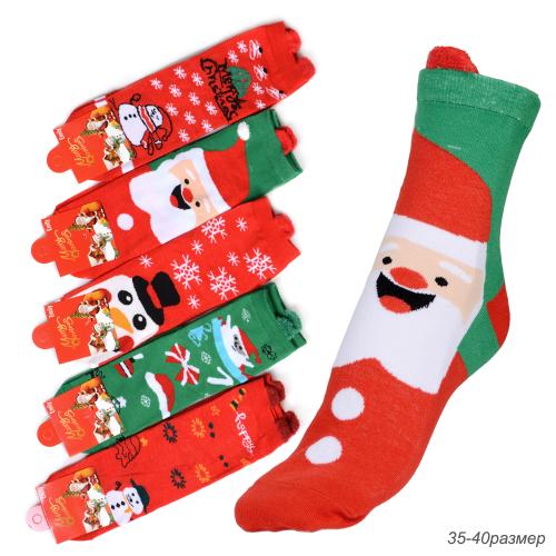 Носки женские р. 35-40 набор 10 штук новогодний / L700 /уп 40/120/микс