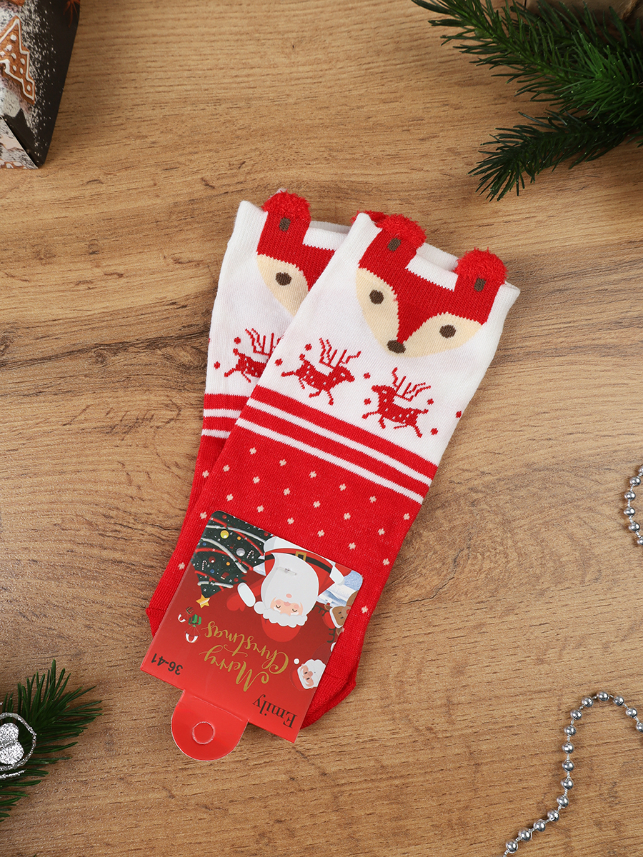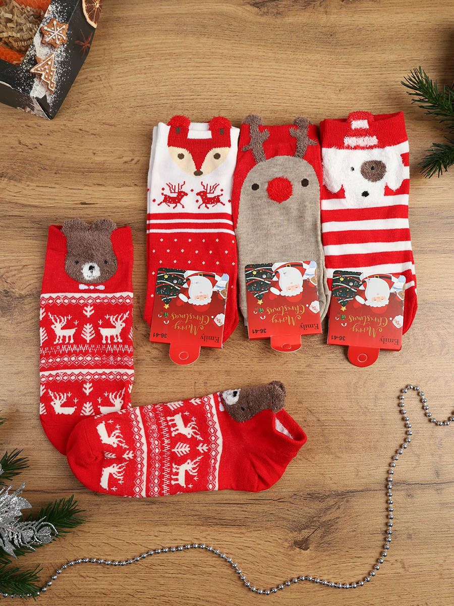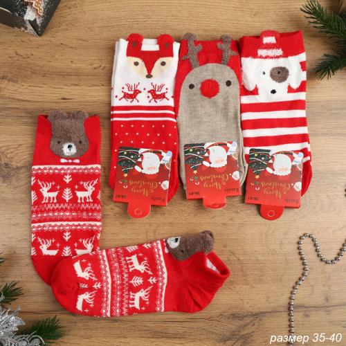 Носки р. 35-40 Новый год короткие / L819 / уп 10/1200/ ОДНА ПАРА/ МАРКА