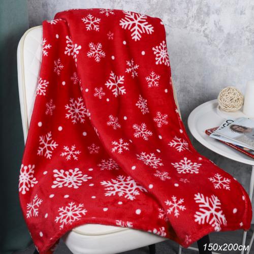 Плед флисовый 150х200 см Красный со снежинками / GP611-5 /уп 20/100/ 696143 новогодний