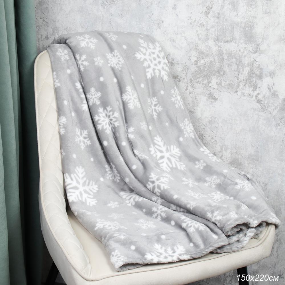 Плед флисовый 150х200 см Серый белые снежинки / GP611-1 /уп 20/100/ 696139 новогодний