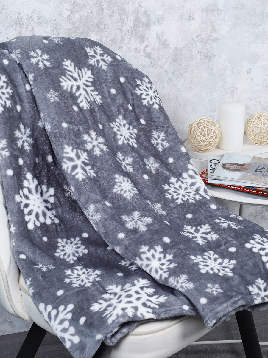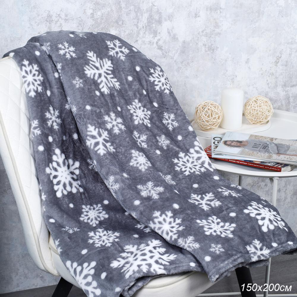 Плед флисовый 150х200 см Снежинки на сером фоне / GP611-16 /уп 20/ 745285 новогодний