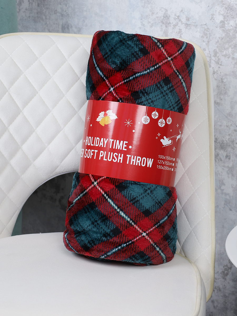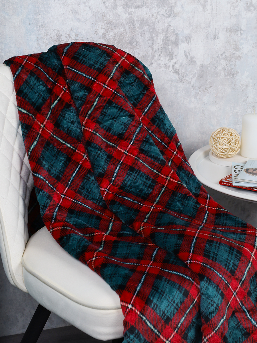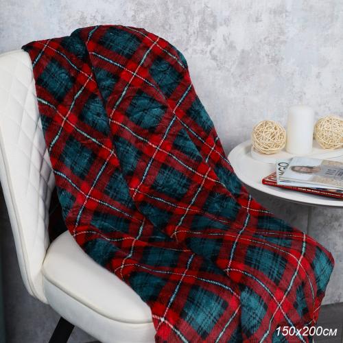 Плед флисовый 150х200 см Зеленый в клетку / GP611-6 /уп 20/100/ 714084 новогодний