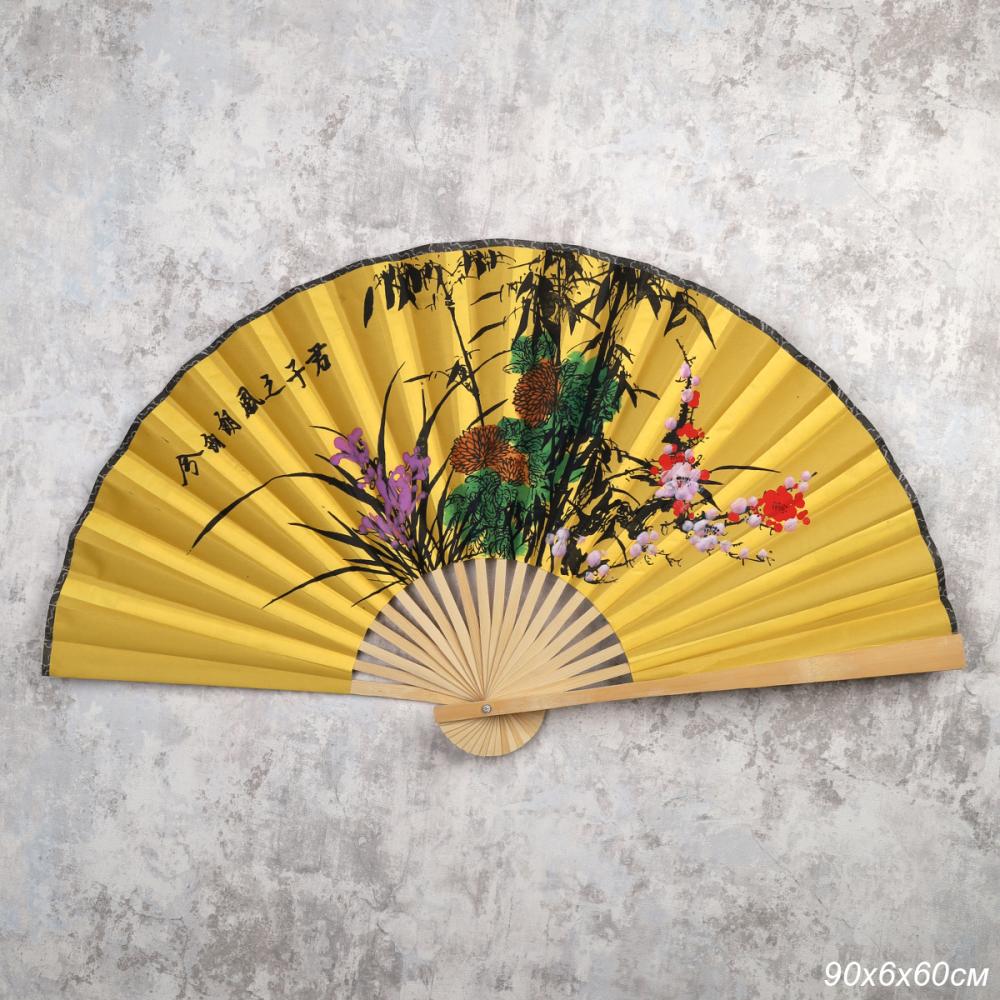 Веер 50 см бамбуковая основа Желтый с Цветами / 622-11 /уп 50/200/742903