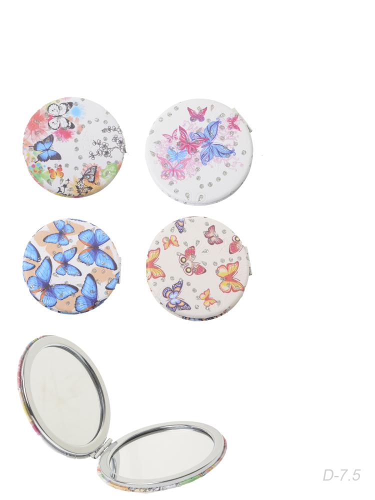 Зеркало карманное 7 см / GT352 /уп 50/300/ кожзам, стразы микс