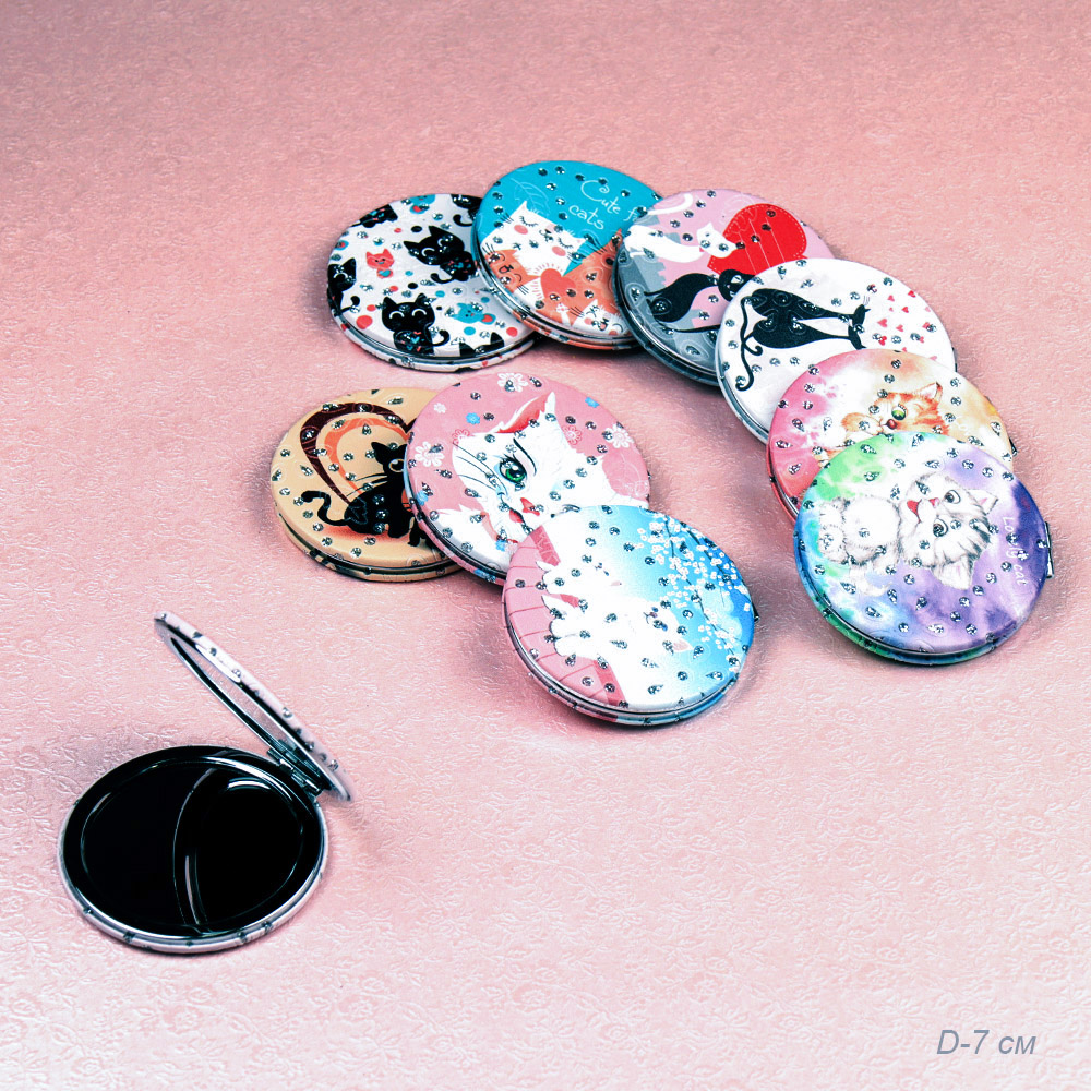 Зеркало карманное 7 см / GT358 /уп 50/300/ кожзам стразы