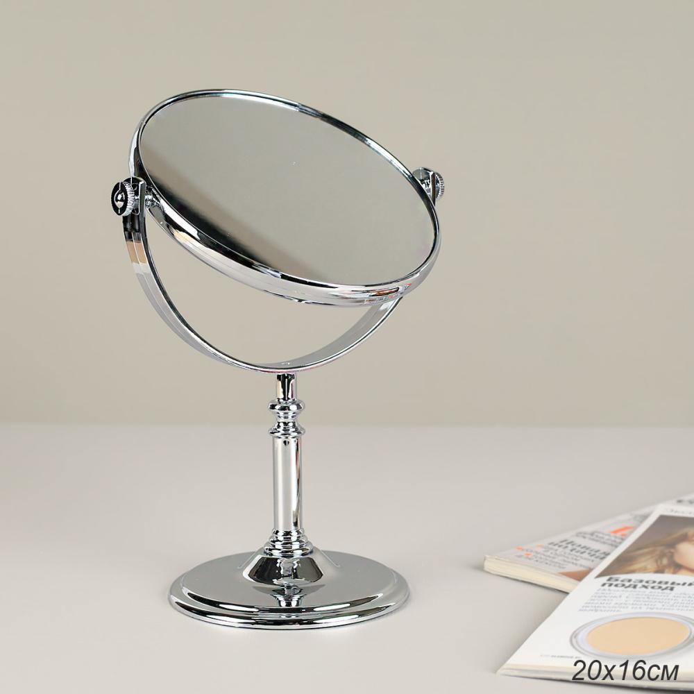 Зеркало настольное круглое двустороннее 16 см / CW419-10 /уп 60/серебро