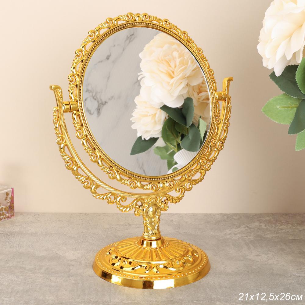 Зеркало настольное ажурное двустороннее 26 см круглое / YDW-08 /уп 48/золото