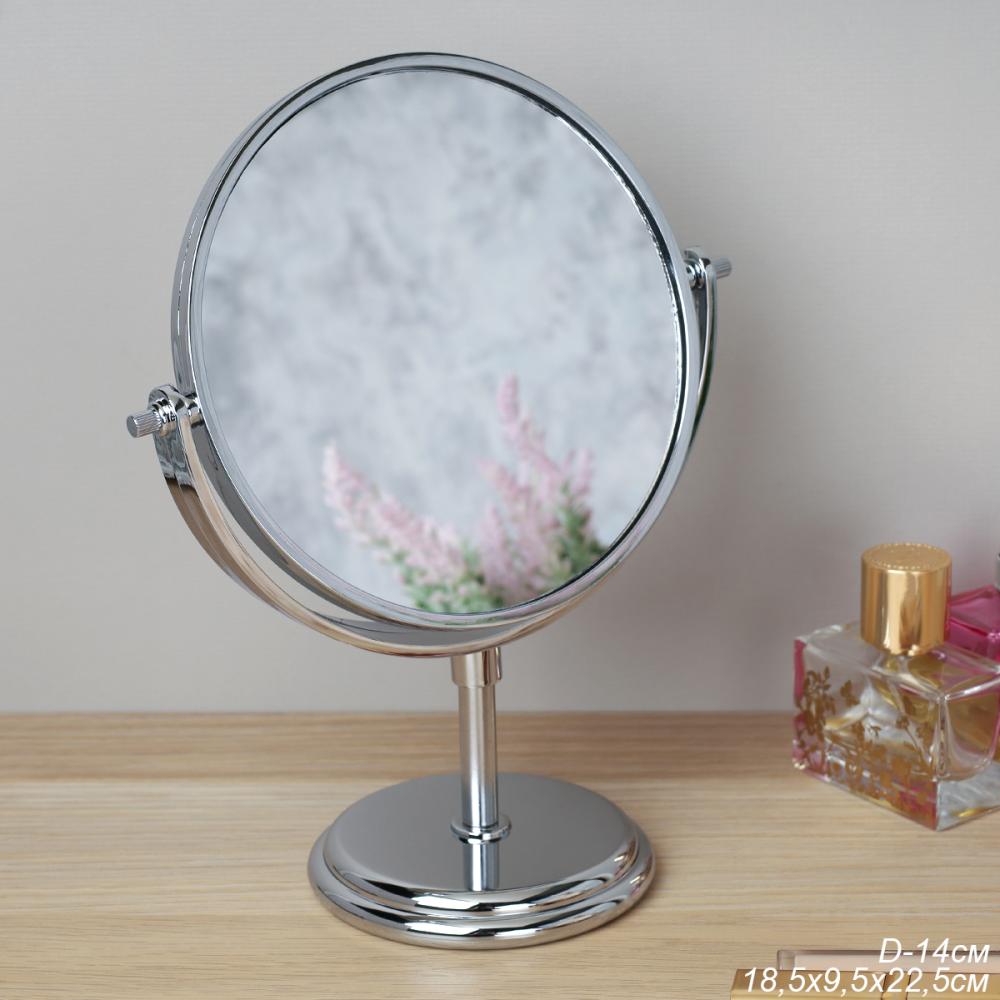 Зеркало настольное круглое двустороннее с увеличением 22 см / 580 /уп 60/d-14
