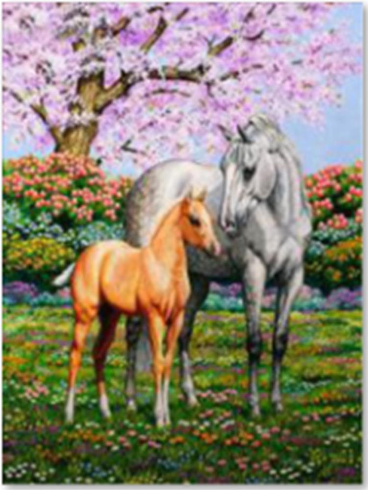 Алмазная мозаика на подрамнике 40х50 Кони в сакуре / YSG2761 /уп 30/полное заполнение