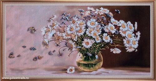 Картина гобелен 50х100 Букет ромашек /SI071 / KS4020-3/ золотая нить