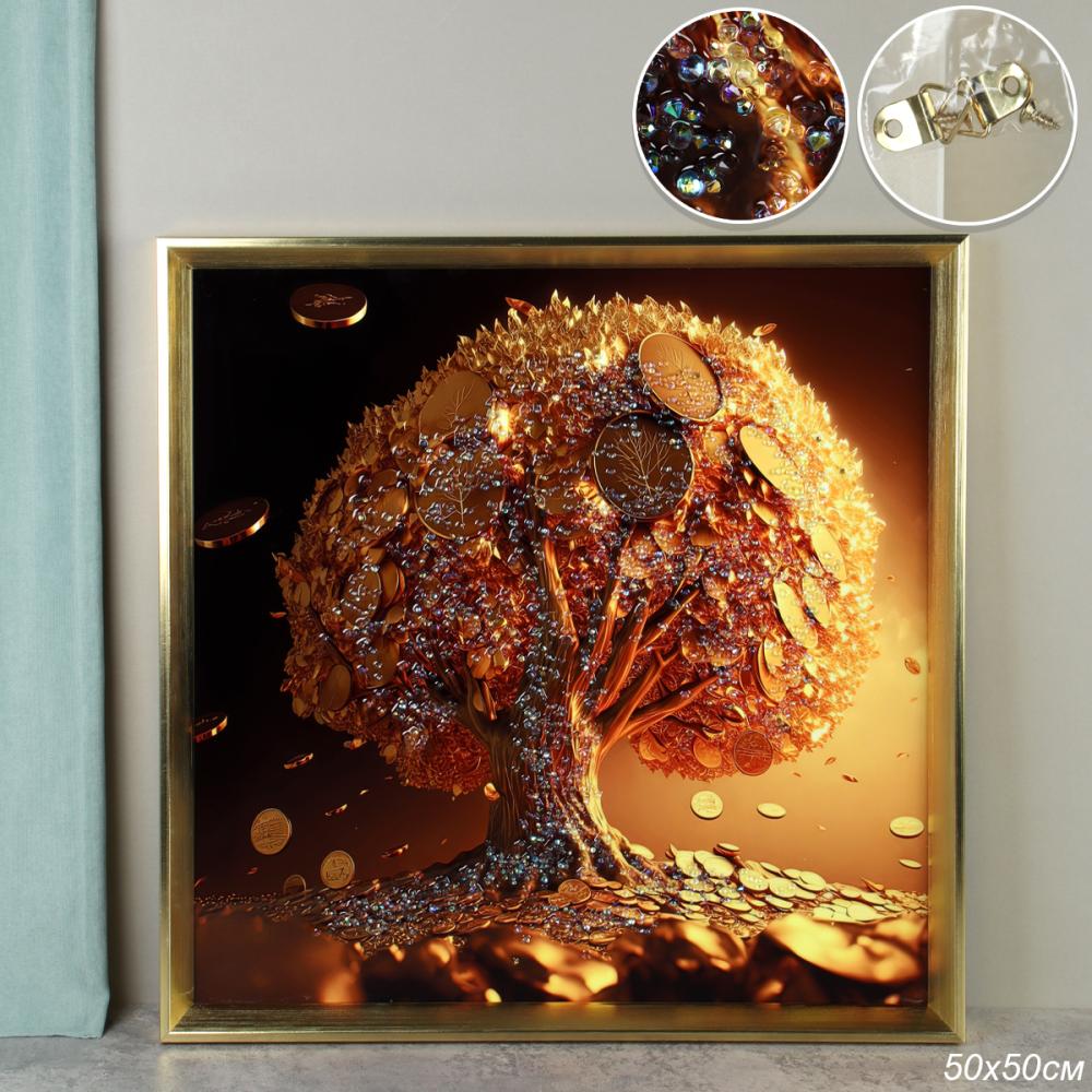 Картина 50х50 Денежное дерево / CX-0288 /уп 24/стразы