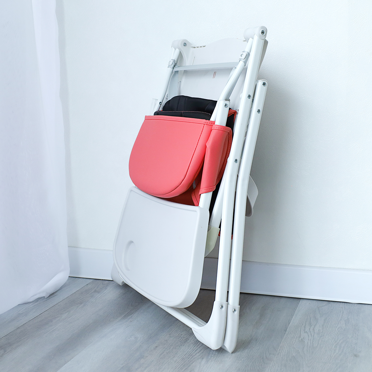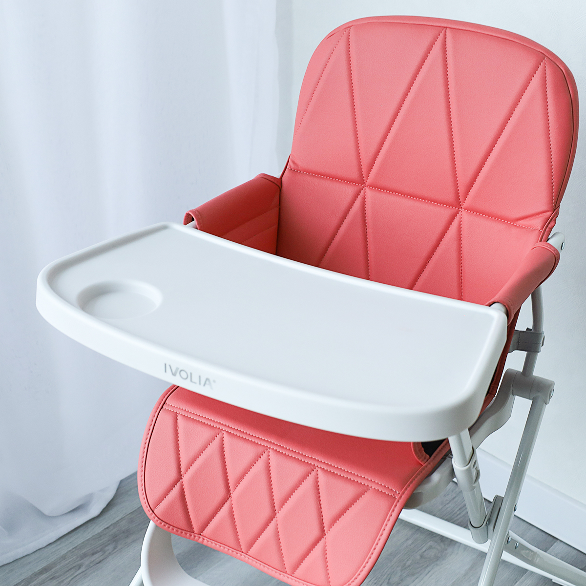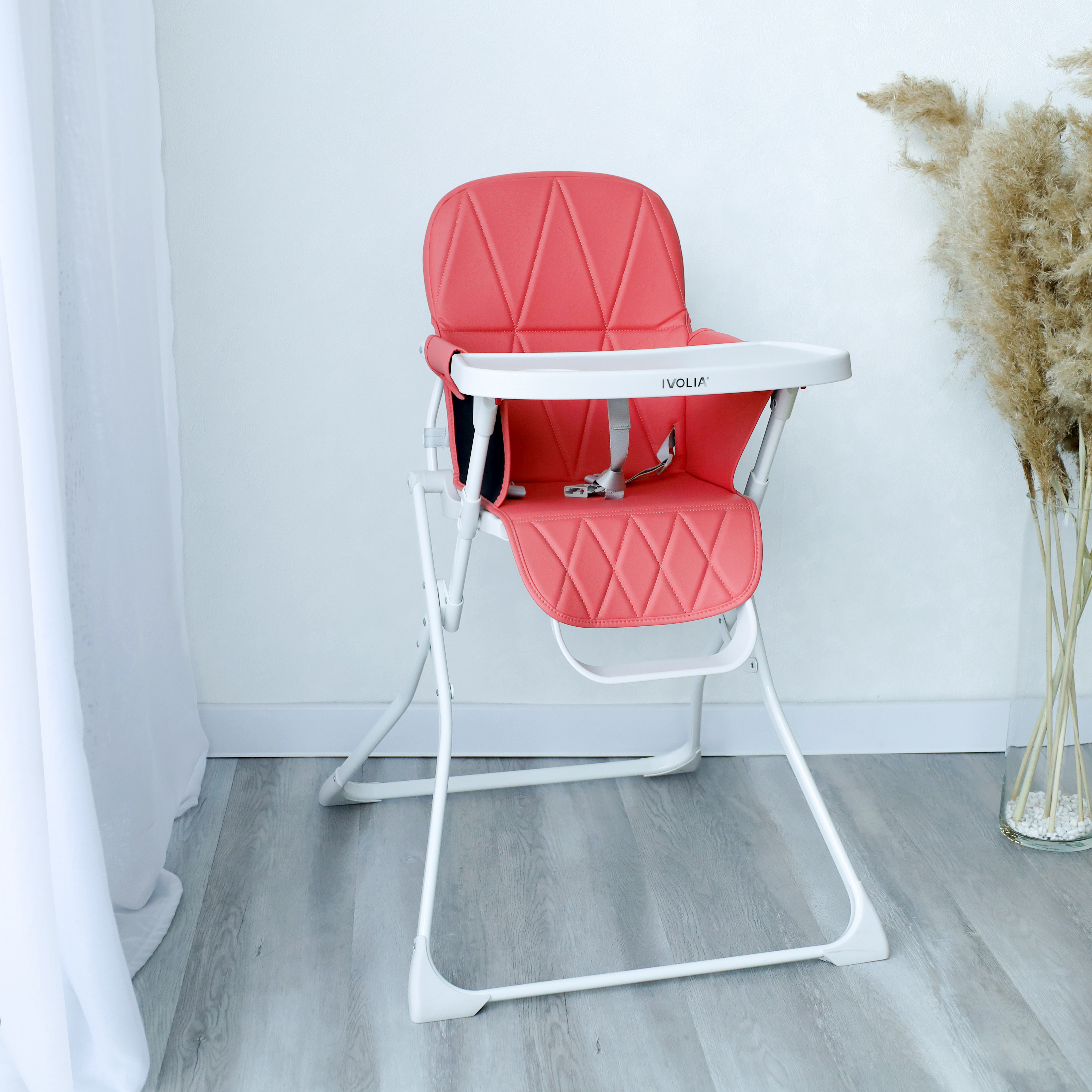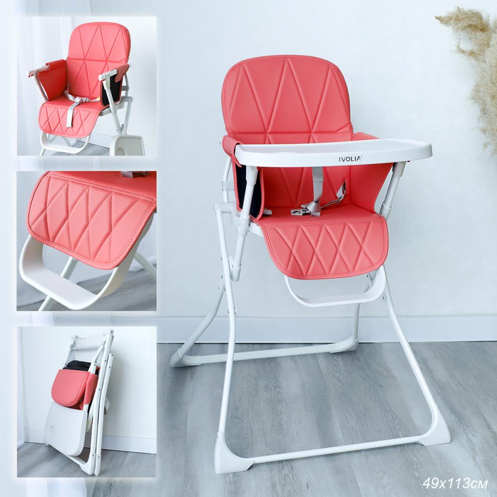Стульчик для кормления. Акцент направлен на необычный дизайн, прочность конструкции, практичность и доступность. Стульчик для кормления рассчитан для детей с 6 мес до 15 кг. Качественный, легко моющийся чехол из экокожи. Съемный столик. Место для кружки . Регулировка наклона подножки . Трехточечный ремень безопасности. Быстрое и простое сложение, компактное хранение. Малый вес. Технические характеристики: Высота стульчика – 95 см, ширина – 58 см, длина – 76 см. Размеры сиденья: Высота спинки – 40 см, ширина сиденья – 30 см, глубина – 25 см (с опущенной подножкой)