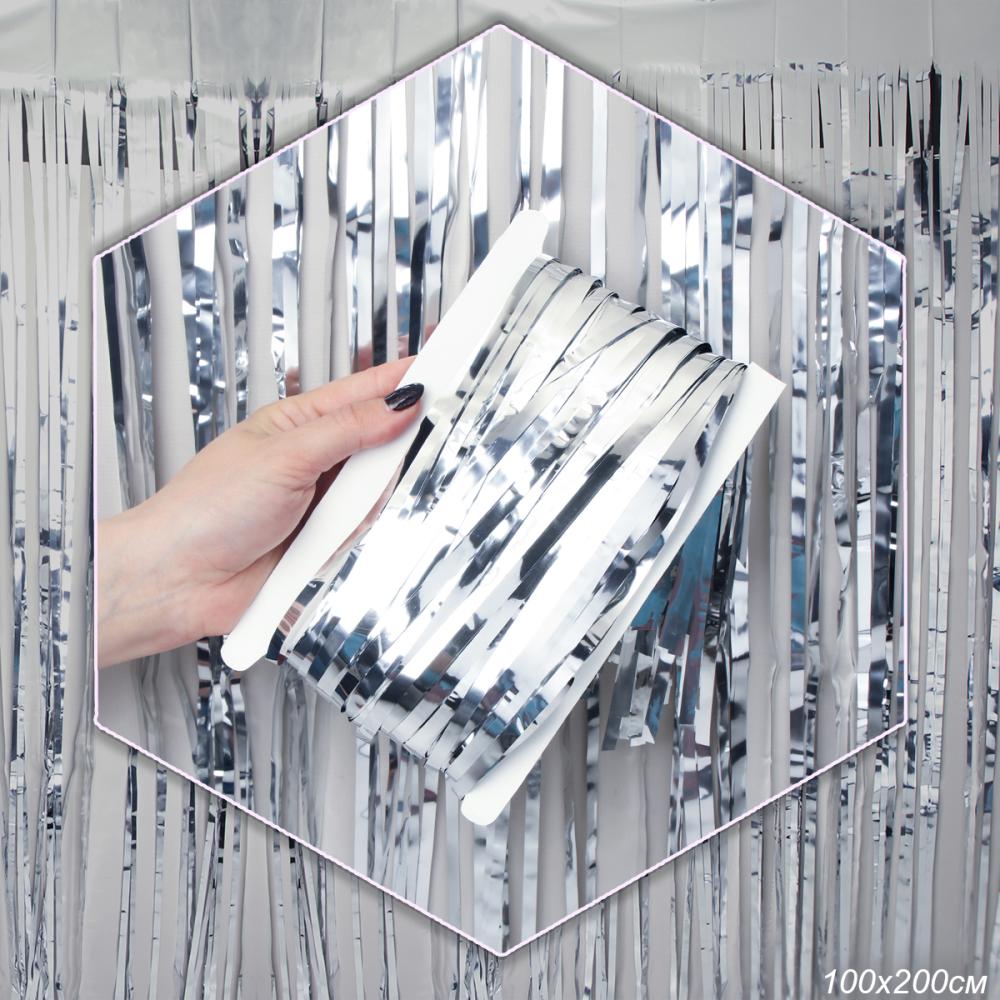 Дождь занавес 100x200 см серебро / NGA-14 /уп 10/300/для фотозоны на клейкой ленте