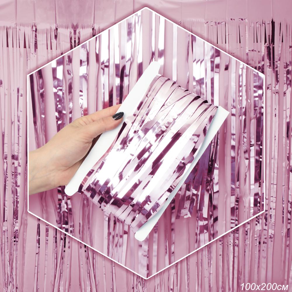 Дождь занавес 100x200 см светло розовый / NGA-19 /уп 10/300/для фотозоны на клейкой ленте