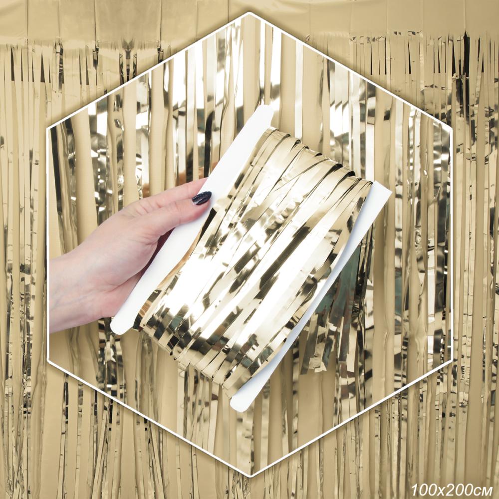 Дождь занавес 100x200 см светлое золото / NGA-18 /уп 10/300/для фотозоны на клейкой ленте