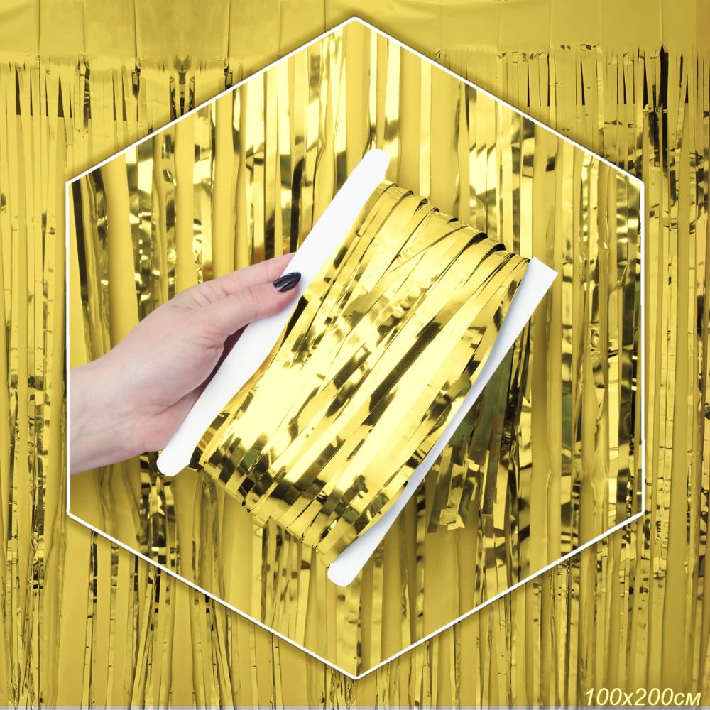 Дождь занавес 100x200 см золото / NGA-15 /уп 10/300/для фотозоны на клейкой ленте