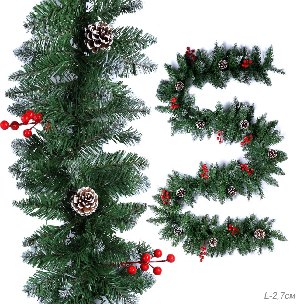 Гирлянда из елочных веток искусственная 270 см 220 веток снег и шишки / WA-5 /уп 15/Новый год