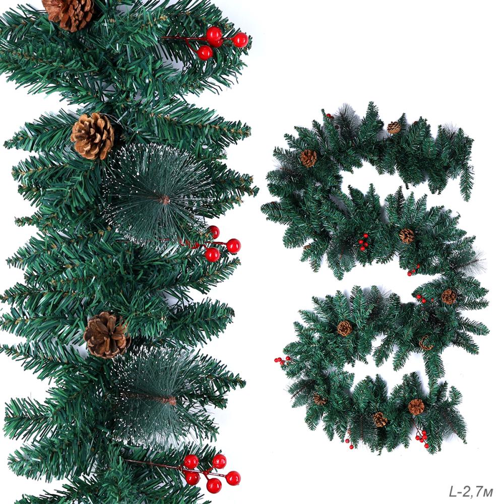 Гирлянда из елочных веток искусственная 2,7 метра 260 веток с ягодами и шишками / WA-1 /уп 17/Новый год