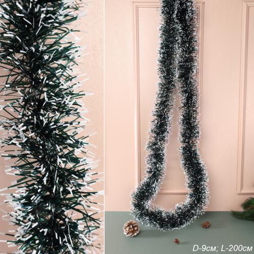 Мишура зеленая с белым напылением 2 м диаметр 9 см / NGA-02 /уп 10/600/