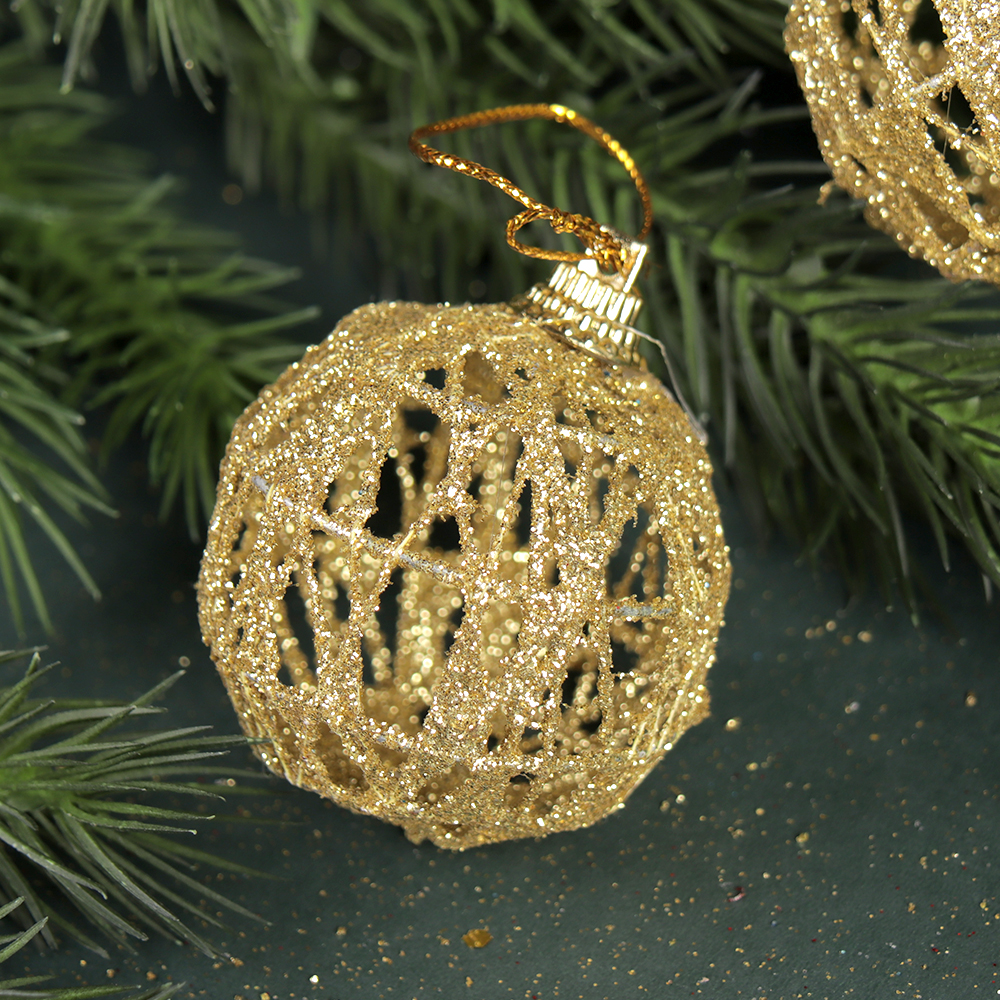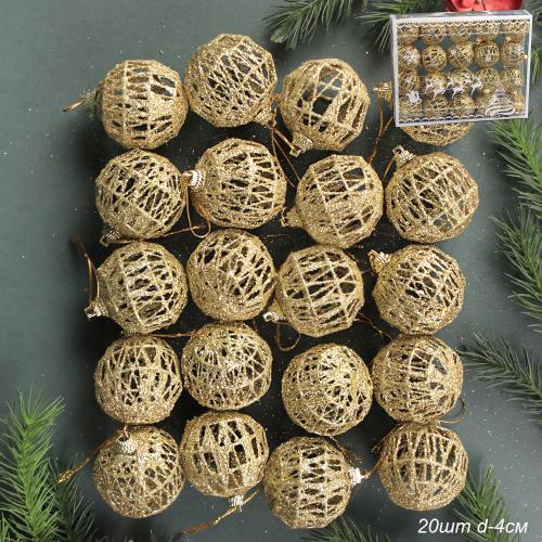 Елочное украшение Шар Ажурный 20 штук 4 см / SF2023-121 /уп 72/ золото