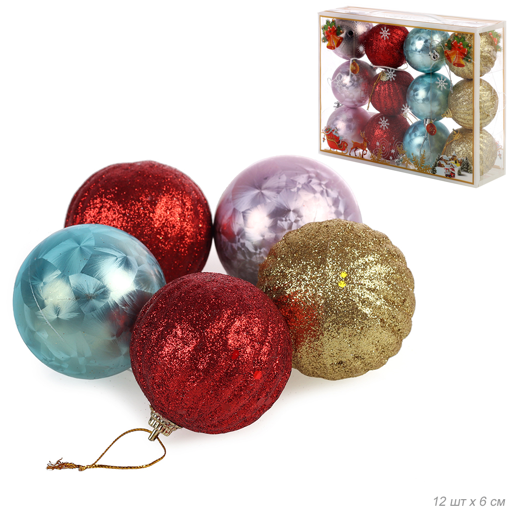 Елочные шары 12 штук 6 см / B-2623 /уп 66/