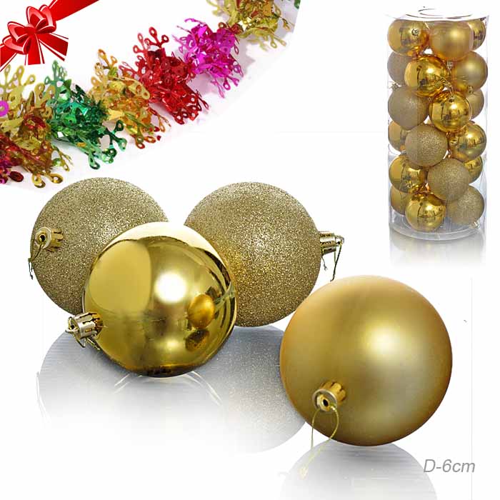 Елочные шары 24 штуки 6 см + гирлянда / HX-6/6 /уп 30/ золотые