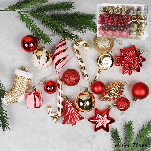 Елочное украшение Ассорти 72 штуки / HX-27 /уп 16/красный+золото