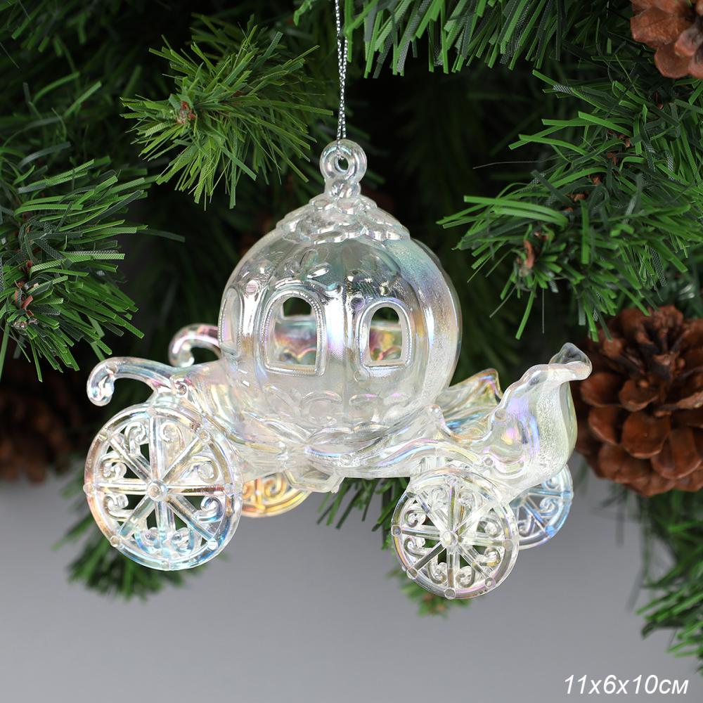 Новогоднее украшение Карета 11х10 см перламутр / LC24Y-008 /уп 48/192/