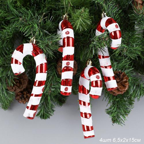 Новогоднее украшение Леденец трость 4 штуки 15 см / WF-190 /уп 192/