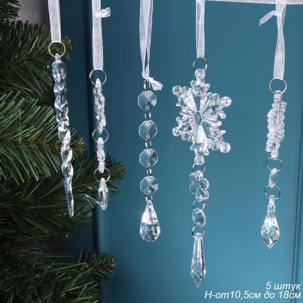 Новогоднее украшение Сосулька снежинка 5 штук набор / YIH-06 /уп 480/