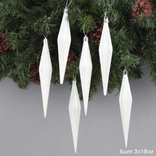 Новогоднее украшение Сосульки 6 штук 18 см / WF-199 /уп 168/белые