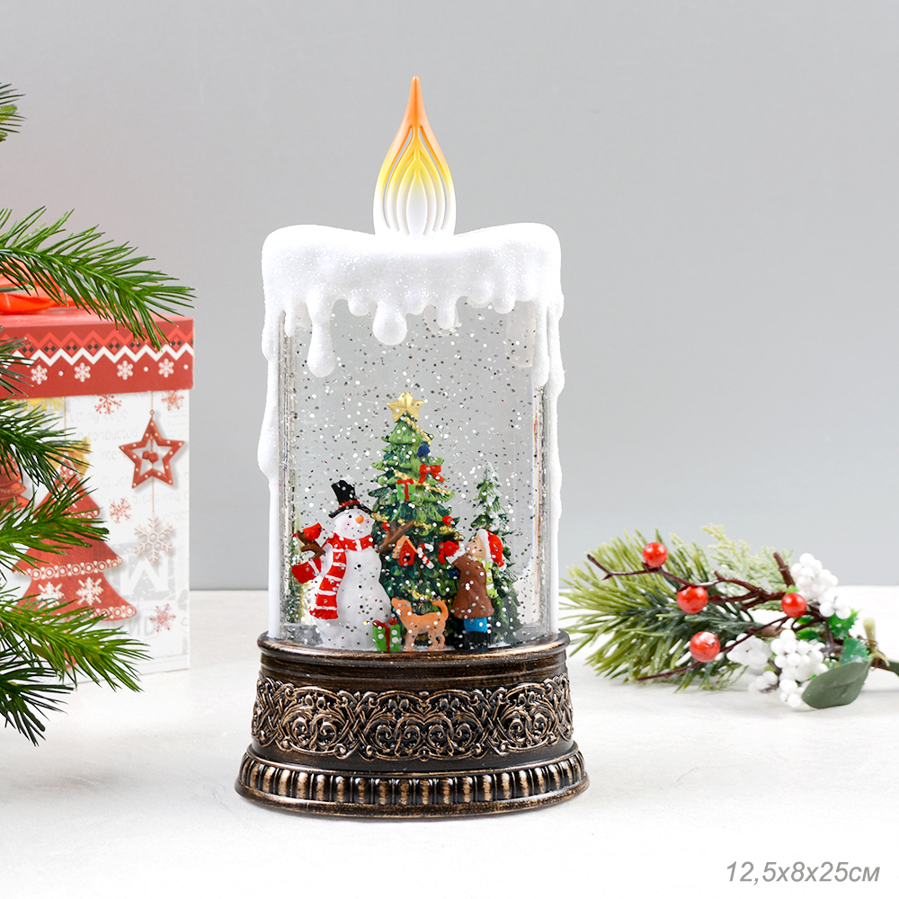 Светильник Новогодний настольный светодиодный 12,5x8x25 см Снеговик у ёлки музыкальный / NG206-65 /уп 12/АКЦИЯ
