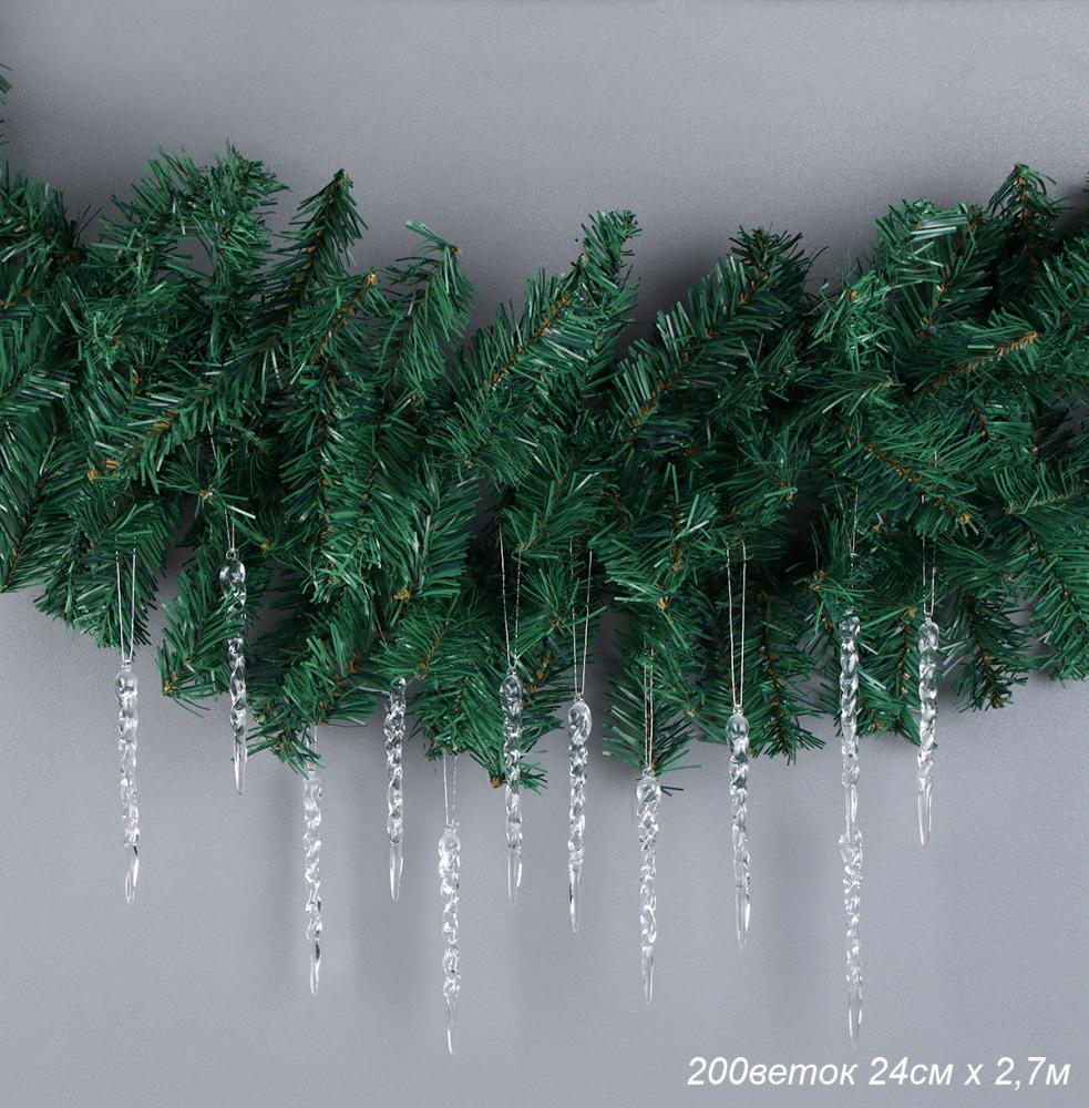 Гирлянда из елочных веток искусственная 270 см 200 веток 24 см ширина+СОСУЛЬКИ набор / WA-200 / уп 40/Новый год