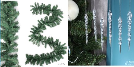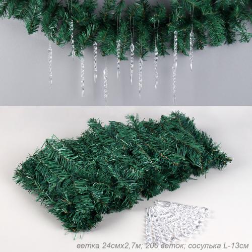 Гирлянда из елочных веток искусственная 2,7 метра 200 веток 24 см ширина+СОСУЛЬКИ набор / WA-200 / уп 40/Новый год