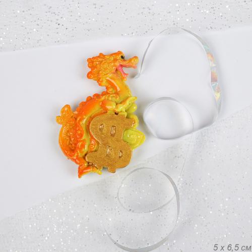 Магнит Дракон золотой с долларом-1 5х6,5 см / 3031 /уп 40/ Символ года 2024 / 714586