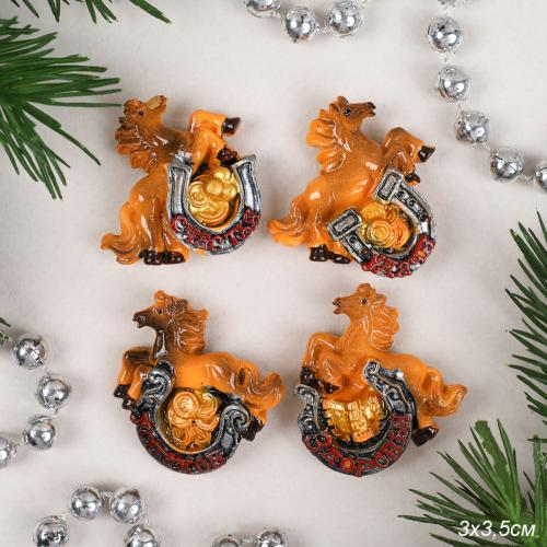 Магнит Лошадь с подковой 3х3,5 см / 25333-1 /уп 48/1152/ Символ года 2026