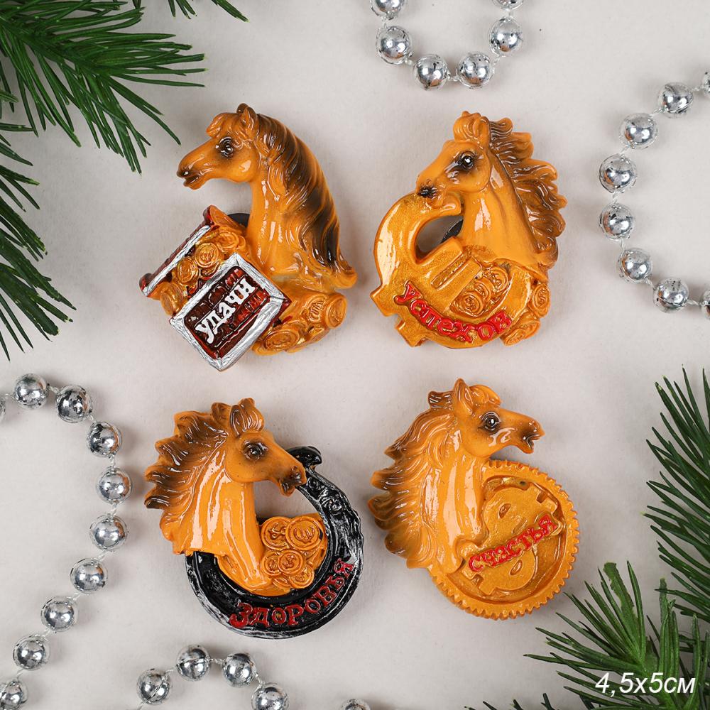 Магнит Лошадь с подковой 4х5 см / 25339-1 /уп 40/960/ Символ года 2026