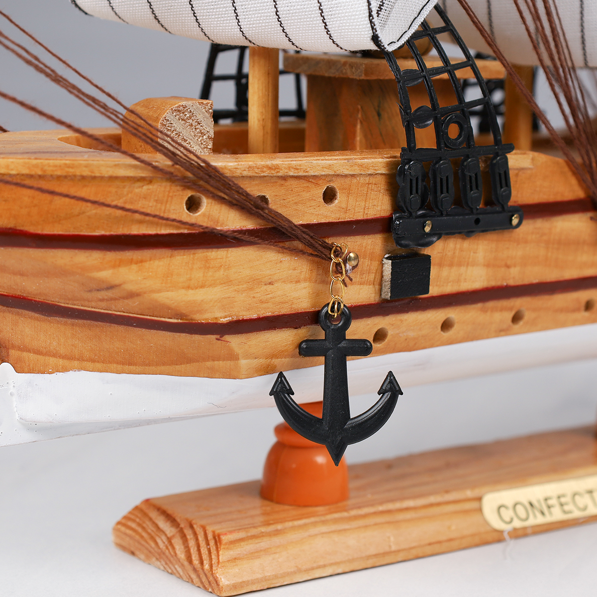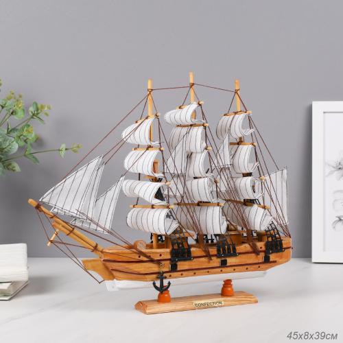 Красивый парусный корабль послужит оригинальным и символичным подарком, а кроме этого станет замечательным украшением интерьера. Корабль "Confection" изготовленный из дерева с тканевыми парусами будет смотреться уместно и на рабочем столе, и на журнальном столике, и на книжной полке. По фен-шуй, парусный корабль считается символом удачи и успеха, процветания бизнеса и финансового достатка. Отличный подарок мужской подарок на 23 февраля, день рождения, юбилей, руководителю, выпускнику. В нашем интернет магазине огромный выбор моделей парусников, и возможно, что именно эта модель корабля "Confection" станет началом для создания целой коллекции. Вы можете купить корабль-парусник в таких городах как Челябинск, Оренбург, Уфа, Самара, Екатеринбург, Омск, Пенза, Никольск, Гусь Хрустальный, Тюмень. Доставка во многие города России бесплатная. Материал: дерево, текстиль.