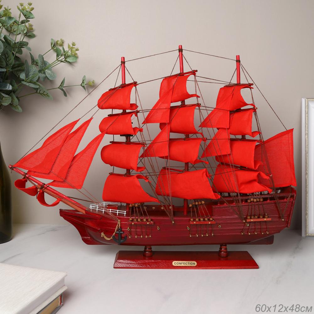 Макет парусного корабля 60х52 см / A26658-60 /уп 4/красный парус