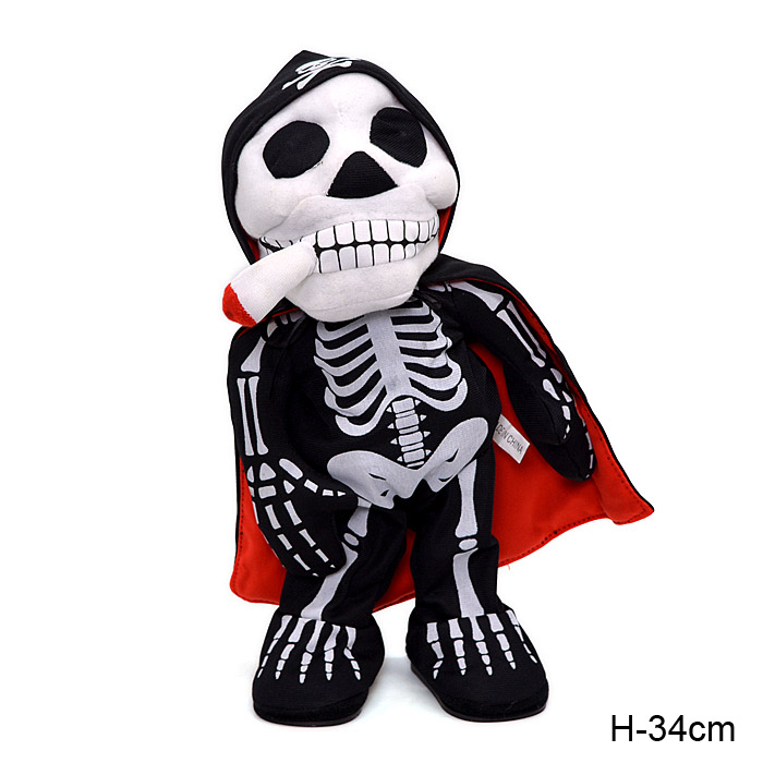 Что же это за звуки из потустороннего мира? Прикол "Скелет" механический, музыкальный, танцует, в накидке - это все она, забава для гостей вашей вечеринки. Игрушка украсит интерьер на День всех Святых. Расположите ее в самых неожиданных местах, и, тогда, страх и необычные чувства обеспечены на всю ночь.