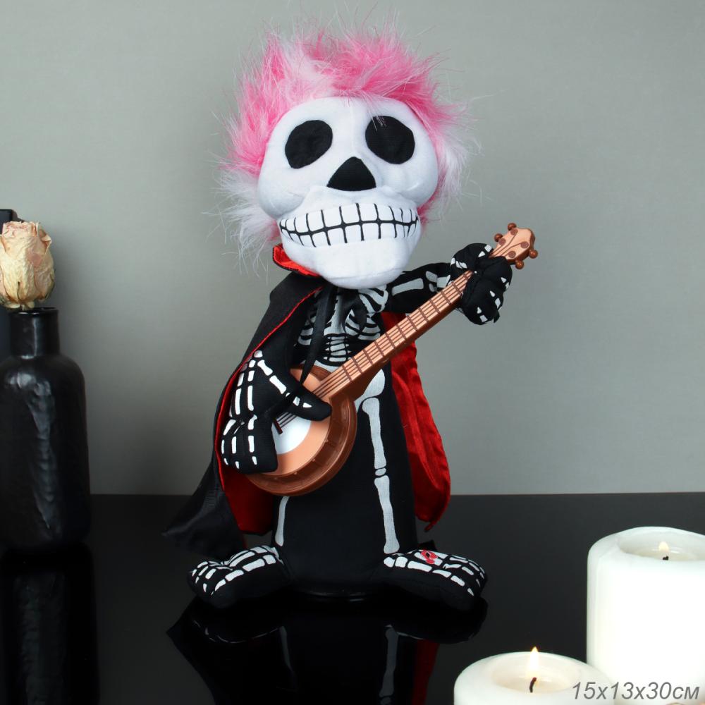Что же это за звуки из потустороннего мира? Прикол "Скелет" механический, музыкальный, танцует, в накидке - это все она, забава для гостей вашей вечеринки. Игрушка украсит интерьер на День всех Святых. Расположите ее в самых неожиданных местах, и, тогда, страх и необычные чувства обеспечены на всю ночь.