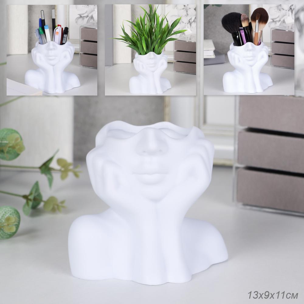 Статуэтка кашпо Лицо 11х13х8 см / NTJ001 /уп 150/белая