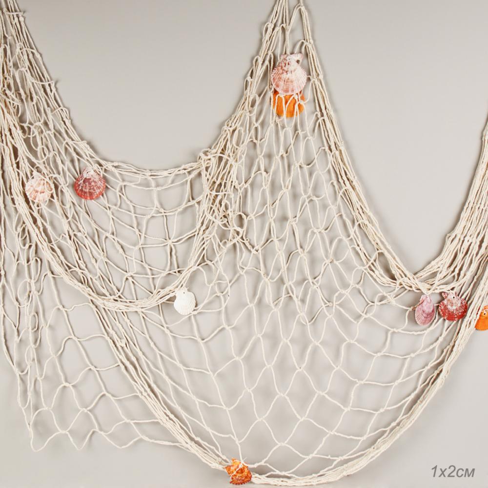 Сеть декоративная 1х2 м белая с ракушками / W726 /уп 100/