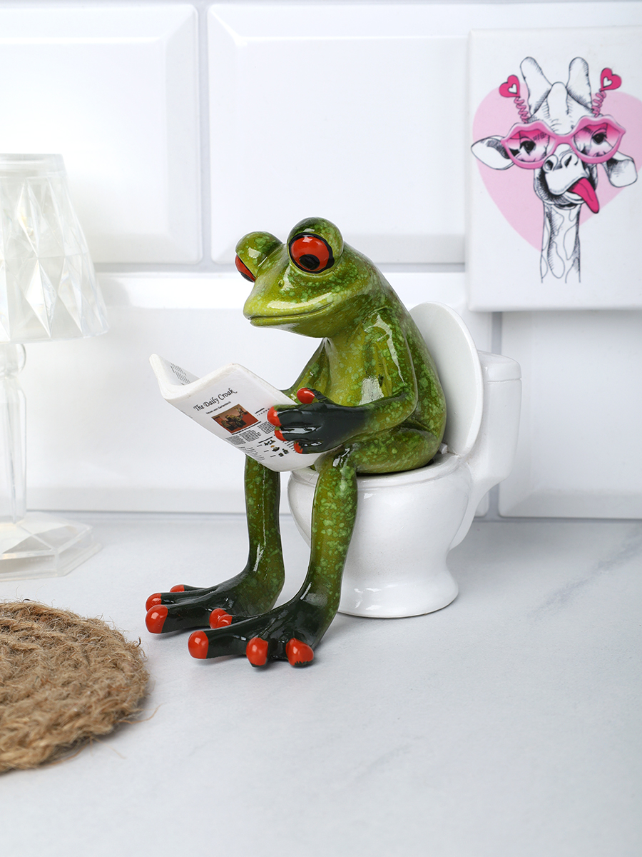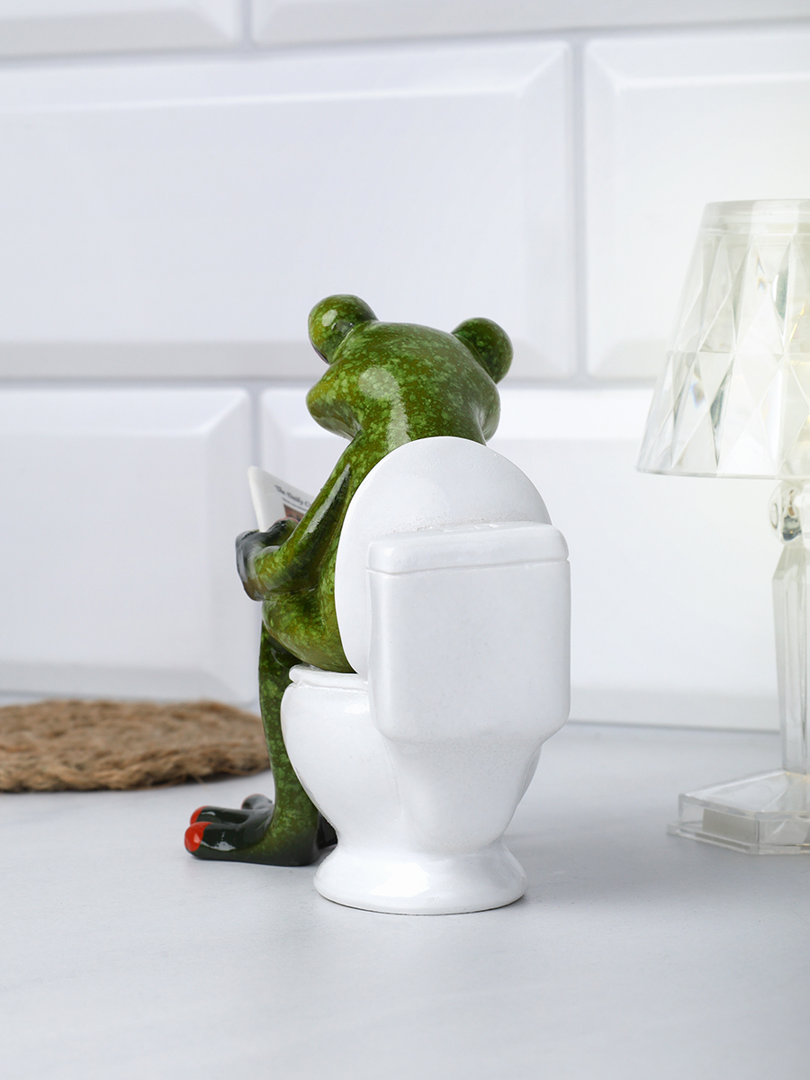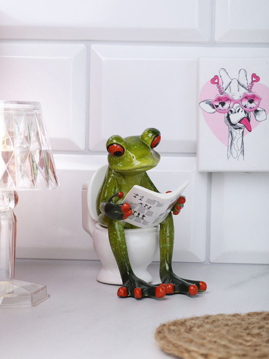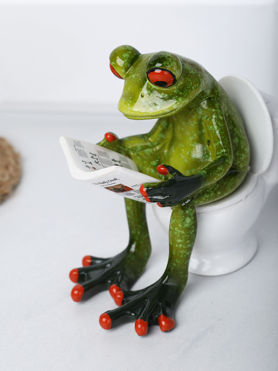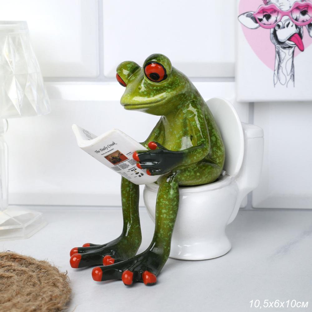 Фигурка Лягушка на унитазе с газетой 10 см / YX49051 /уп 24/