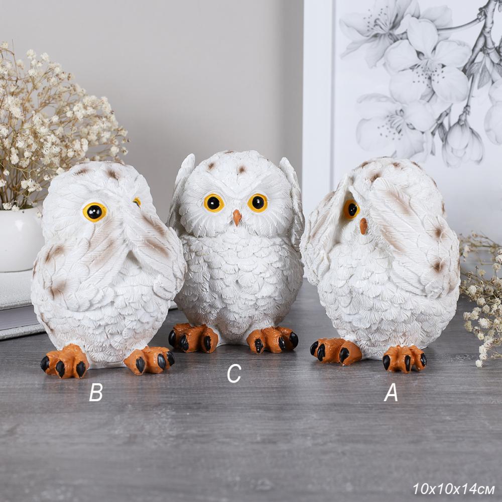 Фигурка Сова не вижу не слышу не говорю 14 см / KY-11-2 /уп 60/белая