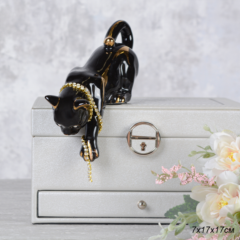 Статуэтка Кошка черная 17 см / B3020-4A /уп 60/стразы