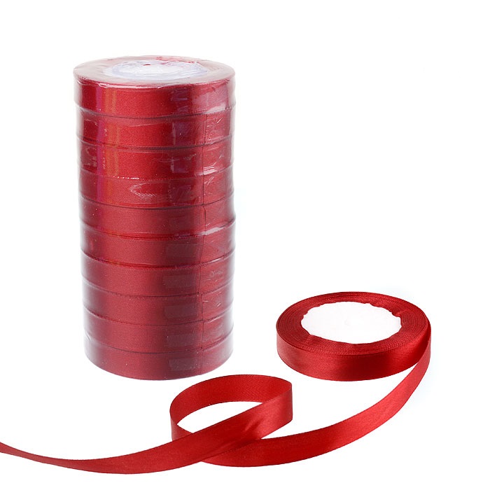 Лента атласная декоративная 25ярд х 1.5см 10 штук набор / 114 /уп 50/бордовый