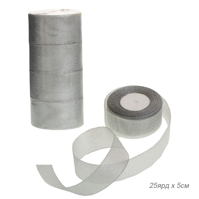 Лента органза декоративная 25ярд х 5см 4 штуки набор / S630 /уп 60/серебро