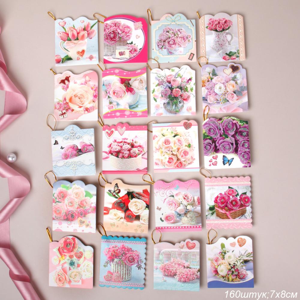 Открытка набор 160 штук Цветы / DE-707 /уп 25/