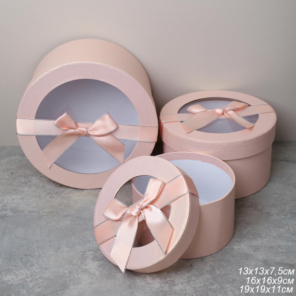 Коробка подарочная 3 штуки 20х20х11 см розовая / 3431-2 /уп 30/прозрачная крышка
